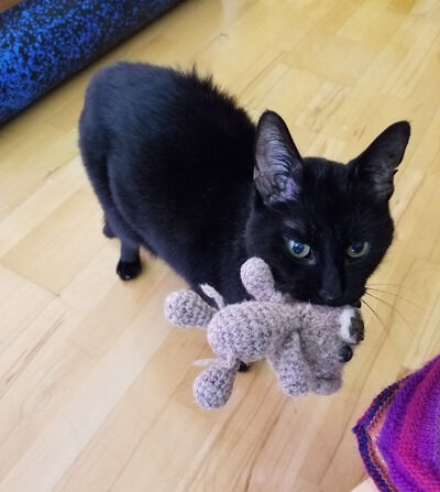 April 05, 2022 ボクじぇらすです うちのおじぃにゃん、私が夫の部屋で話していると・・・あぉー--ん。って鳴きながらくまじぃ咥えて一緒に登場します(笑)必ずくまじぃとあぉーんがセットです。ぼくも仲間に入れろーボクともお話しろーって感じ?