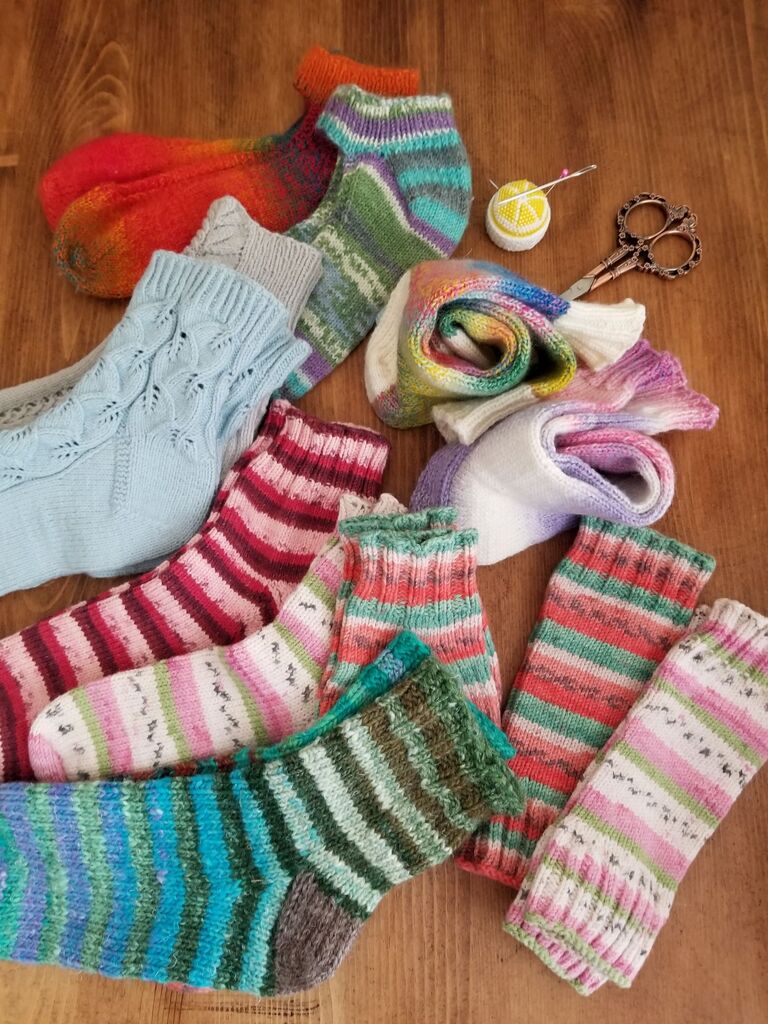 穴が開いても直してまた履けるところが手編み靴下の好きなポイントです。