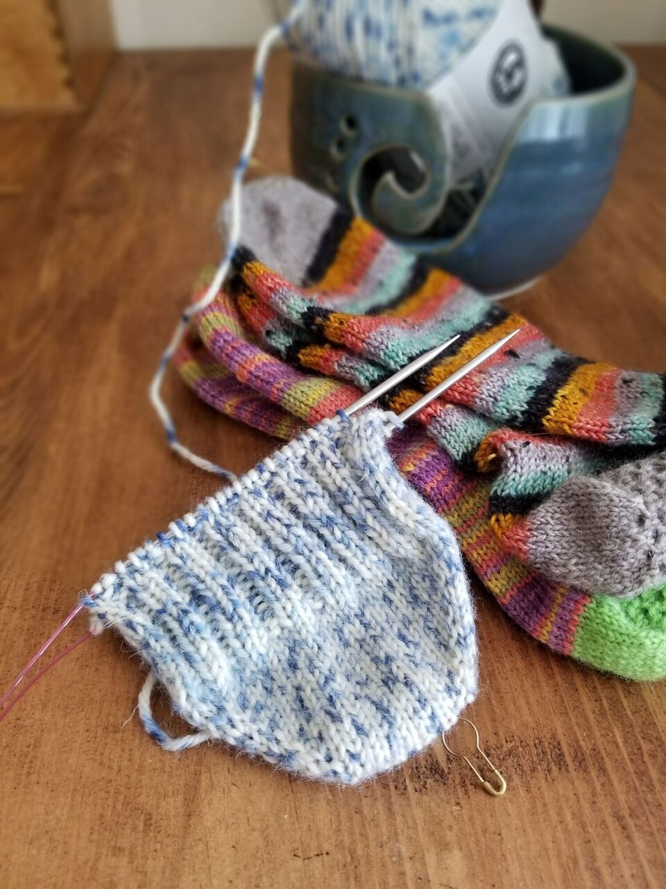 かかとは色変えせずそのままなので、久々にGerman Short Rowsで編んでみようと思います。