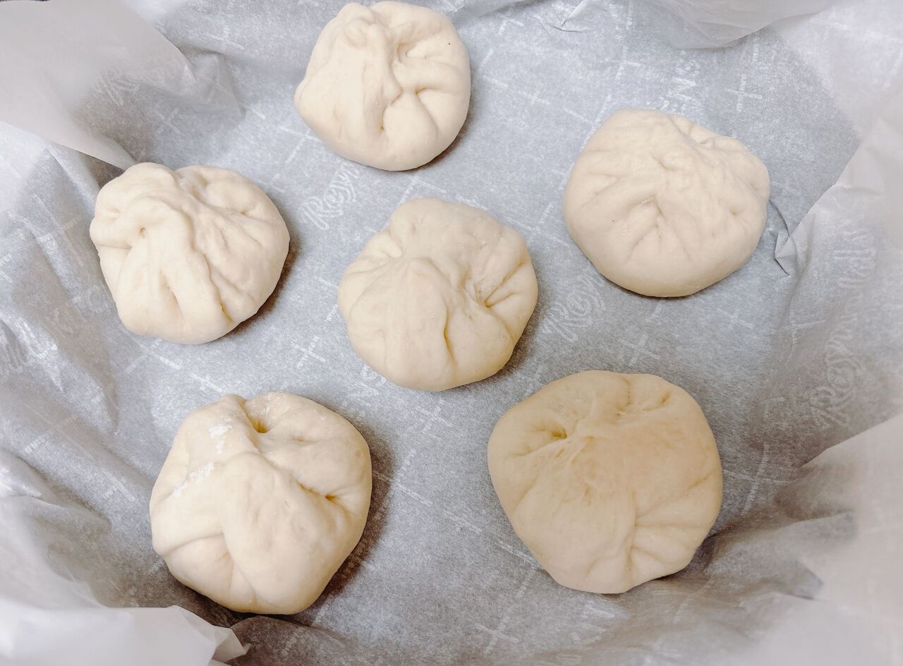 発酵が終わった生地を6等分にし、具を包んでいく。