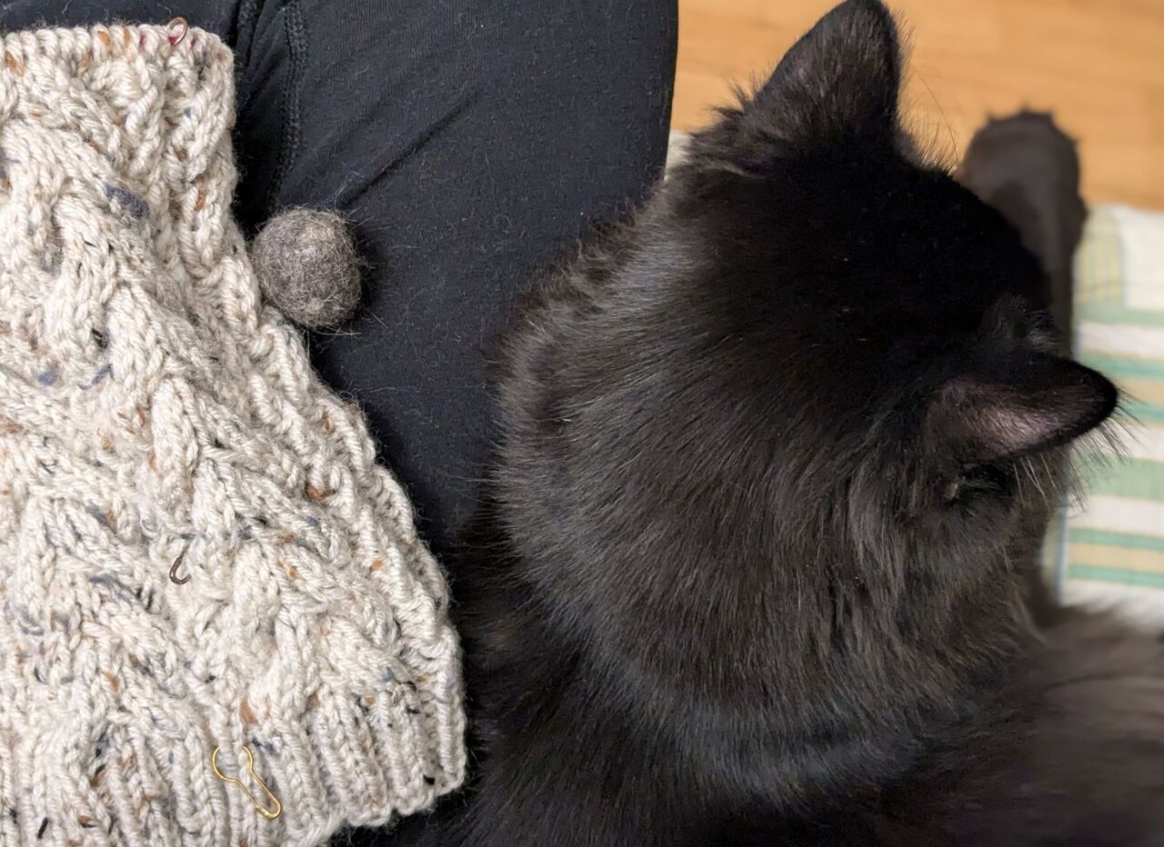 ヘアボールサッカーしていたと思ったらカウチに登ってきて私の膝にくれたグレーテル。