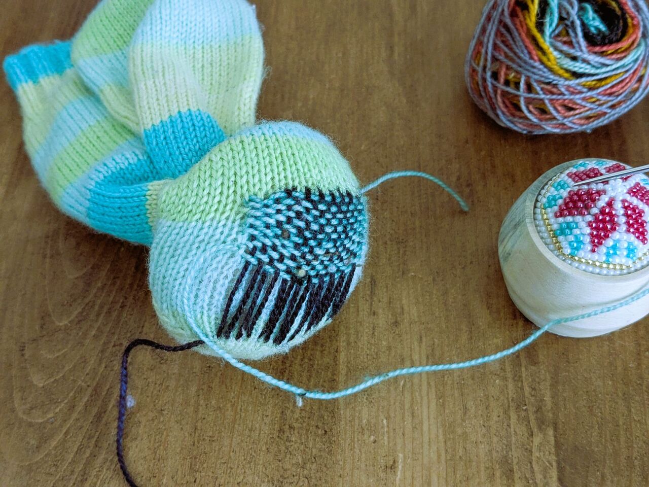 そこで今日は、穴が開きそうだった靴下をダーニングで修理してみました。