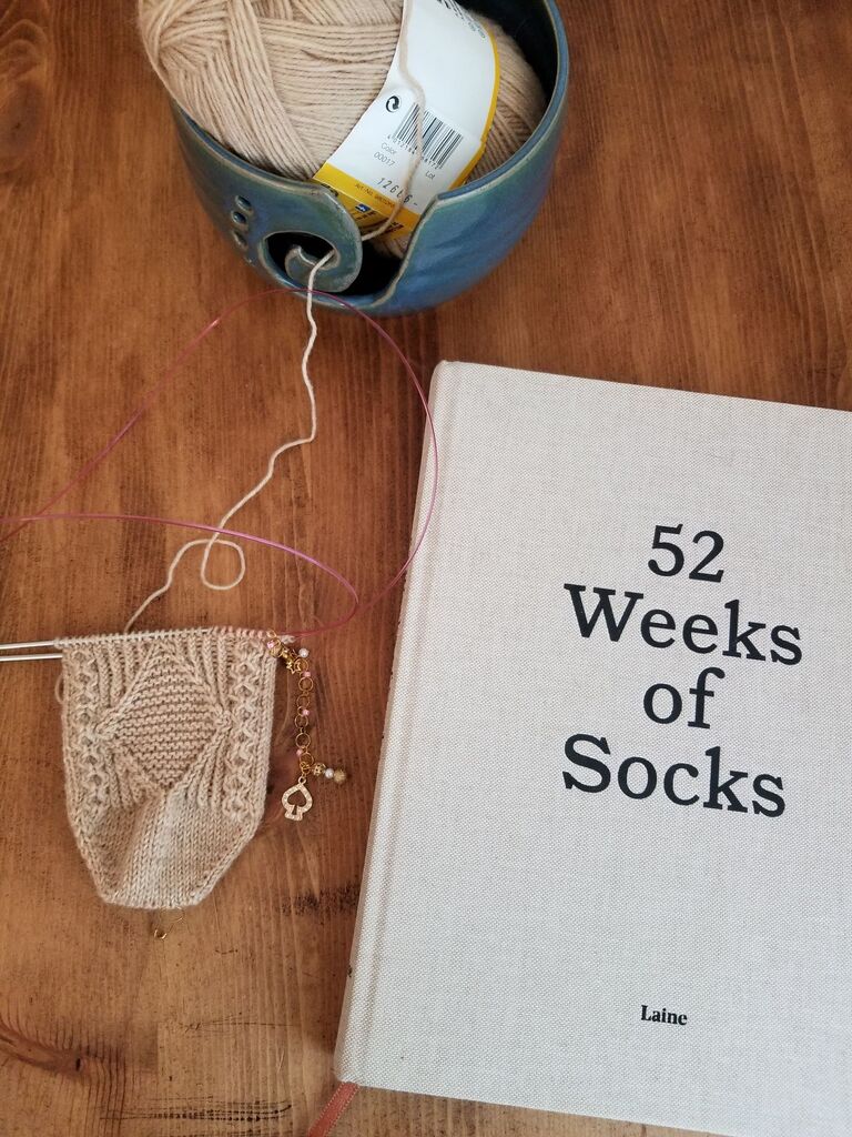November 04, 2022 52 weeks of socksのパターン 発売してすぐに買ってしまったハードカバーの52足分の靴下編みの本今回ので3足目縄編みがたくさん出てきて楽しい。けれど間違えないように気をつけないと模様がおかしくなる。ぼーっと編むには向いてないデザインですが、すごい勢いで進んでいて現在はかかとに突入52 weeks of SocksHinna Sorvala#12 Linea#US1.5(2.5mm)Regia 4ply #00017にほんブログ村ライフスタイルランキング タグ :#棒針編み#手編み靴下#ハンドメイド#ハンドメイドのある暮らし