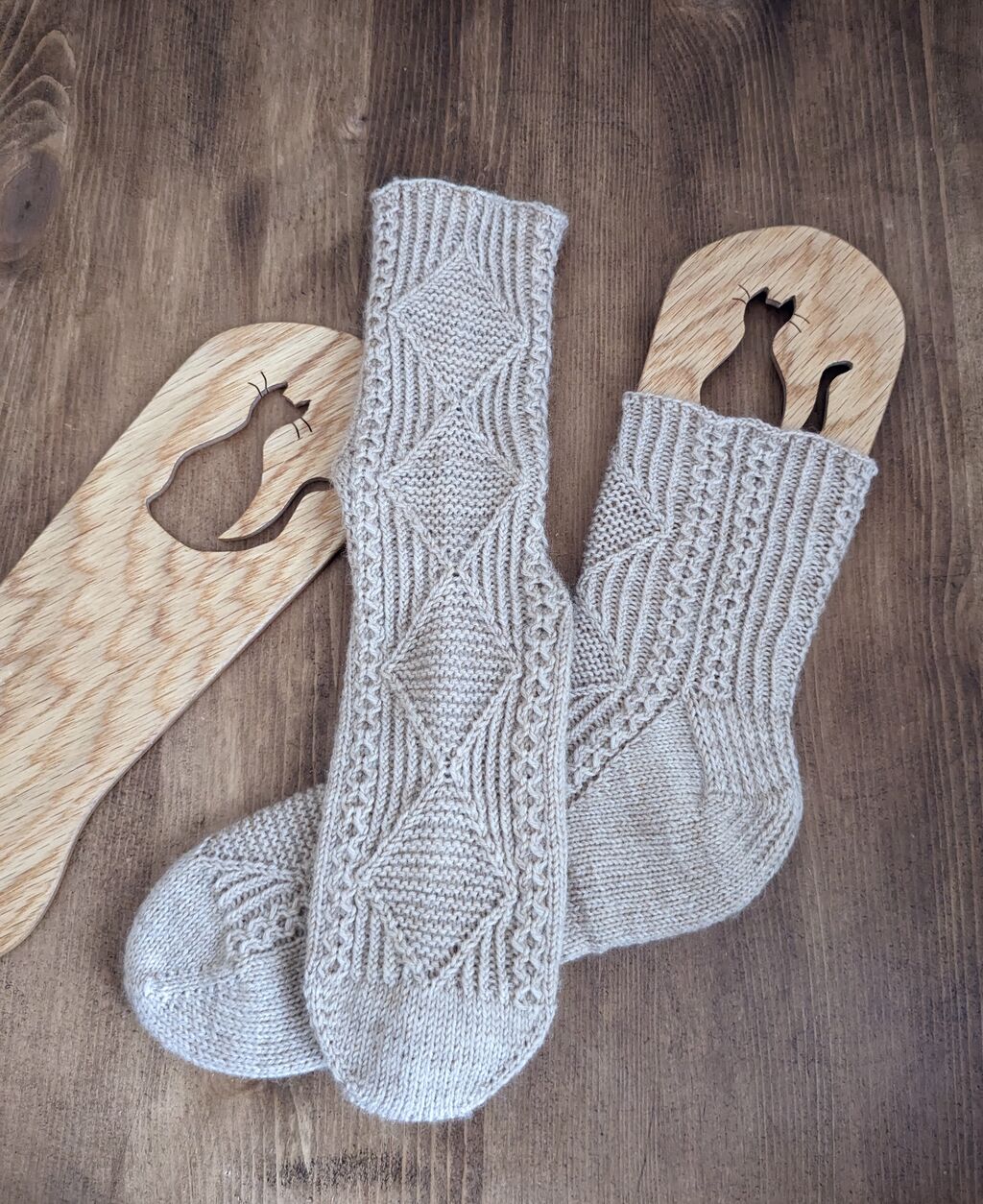 January 27, 2023 52 Weeks of Socksの靴下完成 52 Weeks of Socksのパターンの3足目の靴下が編みあがり水通ししました。おうちの中で使う用で圧迫感なくゆったりめに履きたいので指定通りのサイズで編んでみました。レギアの糸は編みやすく単色も豊富で、手に入りやすいのでお気に入りです。52 Weeks of Socks#12 Linea by Minna SorvalaUS #1.5(2.5mm)Regia 4py Camel Heather #00017 にほんブログ村ライフスタイルランキング タグ :#手編み靴下#ハンドメイドのある暮らし#靴下編み#52weeksOfSocks#英語のパターン