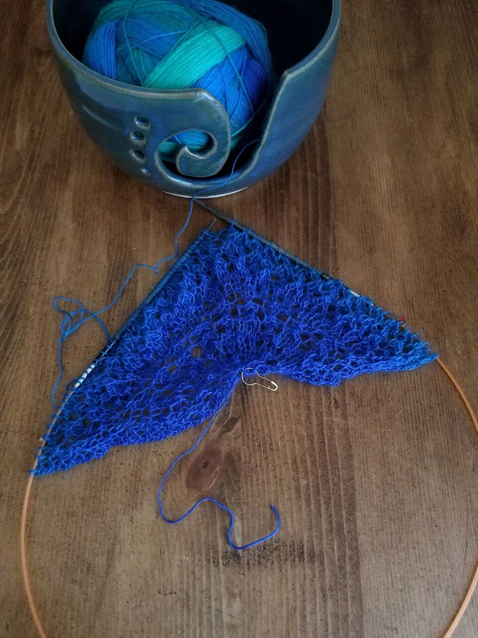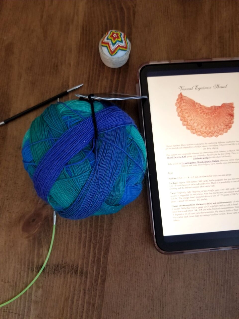 さっそく糸が届いたので編み始めました。Yarn: Schoppel Lace Ball #2360 Turquoise Mill